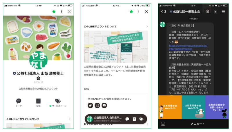 山梨県栄養士会のSNS・Webサービス